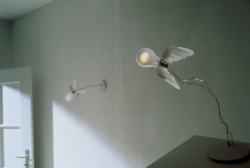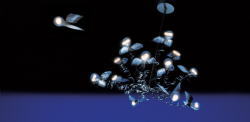 Lucellinoのシャンデリア版です。24灯の鳥は、自由に空に向かって飛び立とうとしたり、水平に優雅に飛んでる姿だったり、空から地上に向かうところだったり、好みの形を演出する事ができます。教会やレストランのような大きな空間での演出はもちろん、住宅の玄関の吹き抜け、または天井の高いリビングなど、決まった使い方はありません、好みの形で自由に楽しむことができます。