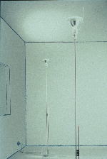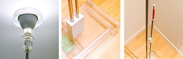 高さ190cmのこの器具は、ソケットとベースがガラスでできていて、涼しげに、まっすぐ立つ礼儀正しいフォルムをしています。