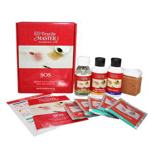 SOS テキスタイル・キットは、頑固シミや古いシミにシミに対応した4種類のクリーナーやリムーバーを詰め合わせた大変便利なキットです。